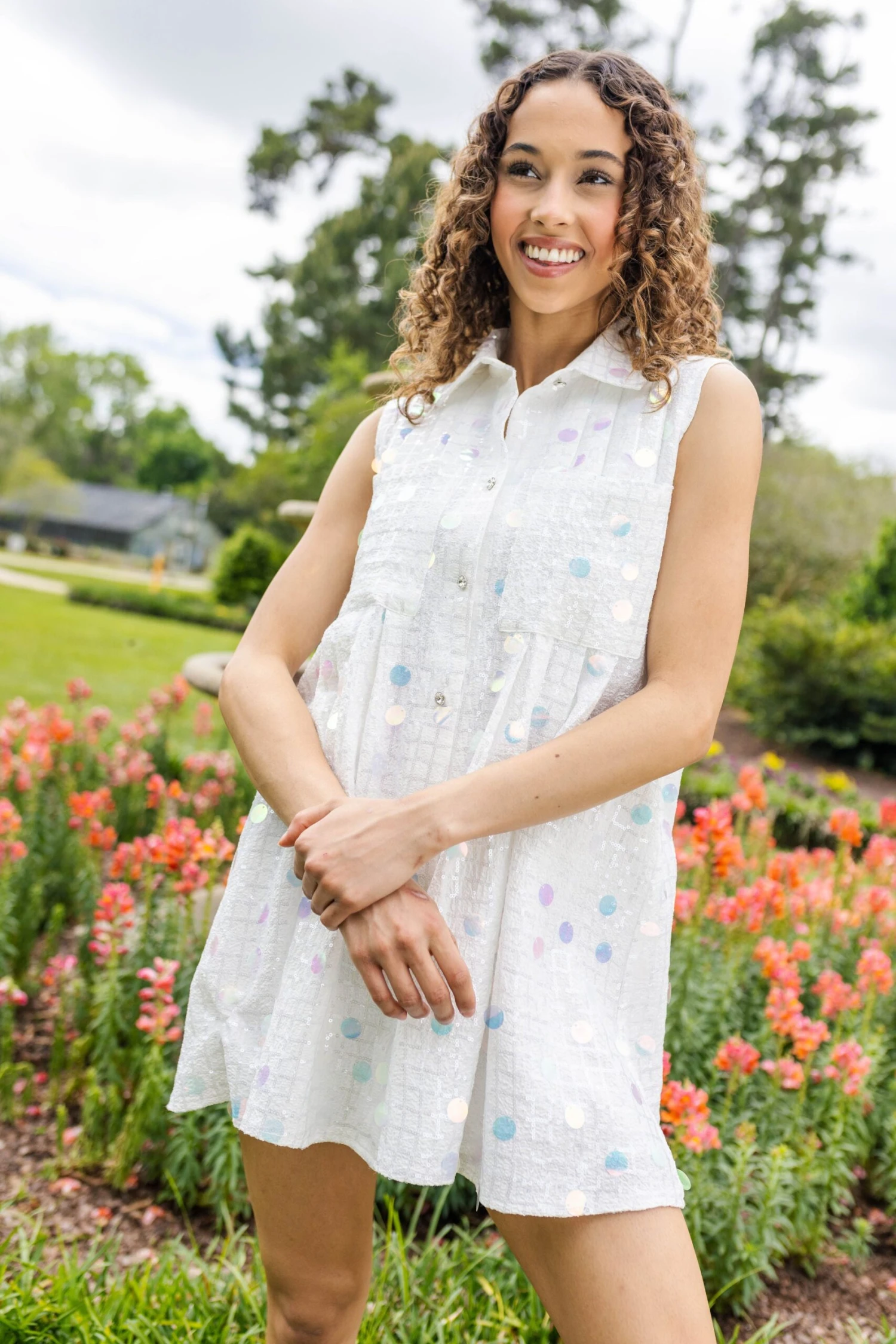 - Sleeveless button down dress